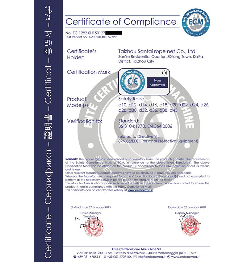 泰州市三泰健康科技有限公司(原 泰州市三泰繩網(wǎng)有限公司),本公司成立于1988年12月22日,至今近30年的生產(chǎn)歷程。多年來(lái)的生產(chǎn)經(jīng)驗(yàn),加之我們不斷的創(chuàng)新,已經(jīng)建設(shè)成為集研制、開(kāi)發(fā)、生產(chǎn)、銷售為一體的龍頭企業(yè)。公司生產(chǎn)線由捻線車間、制繩車間、織網(wǎng)車間、織帶車間、織(絞)繩車間、安全網(wǎng)組裝車間、安全帶組裝車間、檢驗(yàn)室等組成。企業(yè)現(xiàn)有職工155人,企業(yè)管理人員6名,市場(chǎng)研發(fā)人員8名,專業(yè)質(zhì)檢人員2名,......